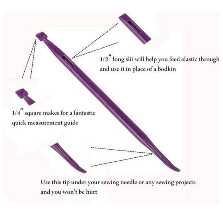 - The slot in the That Purple Thang can be threaded with elastic or ribbon for easy insertion into casings or eyelets