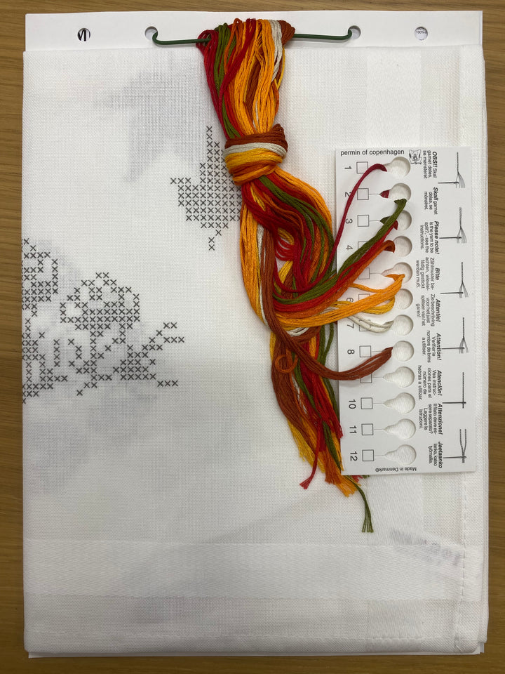 Mushroom & Leaves table runner with printed crosses is a kit for cross stitching from the Scandinavian Art Needlework Series by Permin.