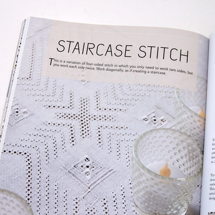 Pulled Thread Embroidery is also known as 'counted thread openwork' or 'drawn fabric embroidery', this beautiful whitework technique is achieved by simply pulling on the threads of the fabric, without cutting or drawing them. It is worked on loosely woven fabrics using a fine tapestry needle, and involves accurately counting the threads to create intricate, geometric designs.