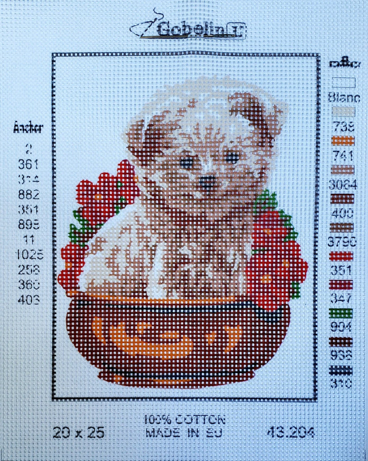 Dog in Bowl Pot tapestry canvas by Gobelin L.