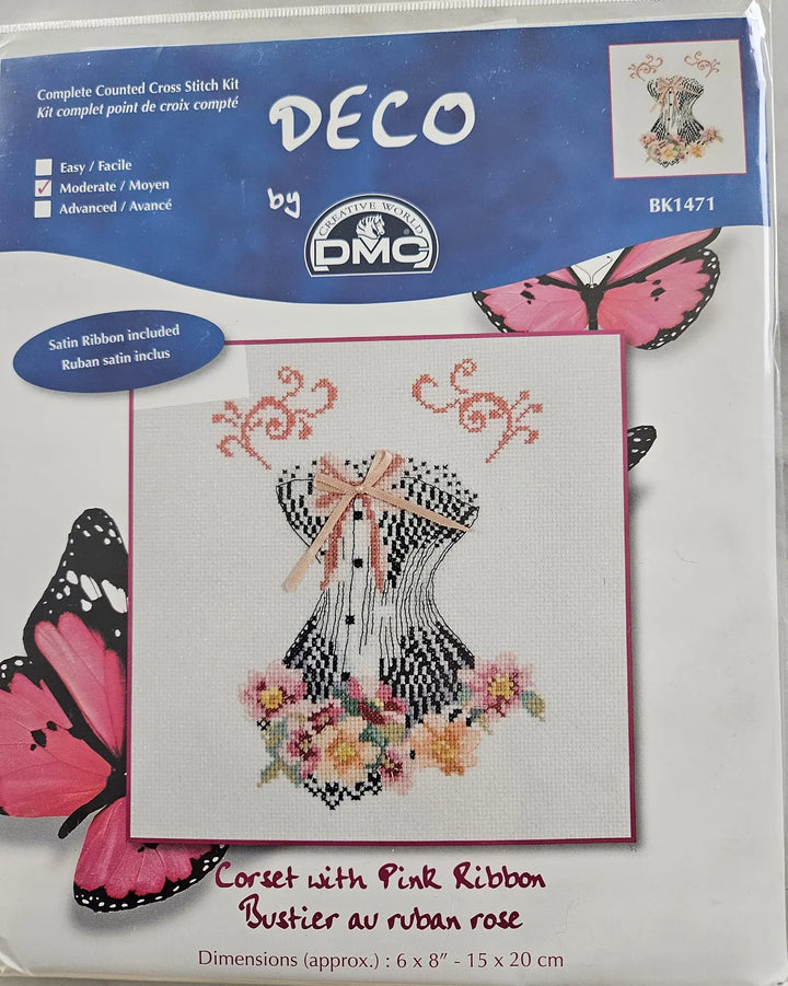 Corset with Pink Ribbon Counted Cross Stitch Kit by DMC BK1471