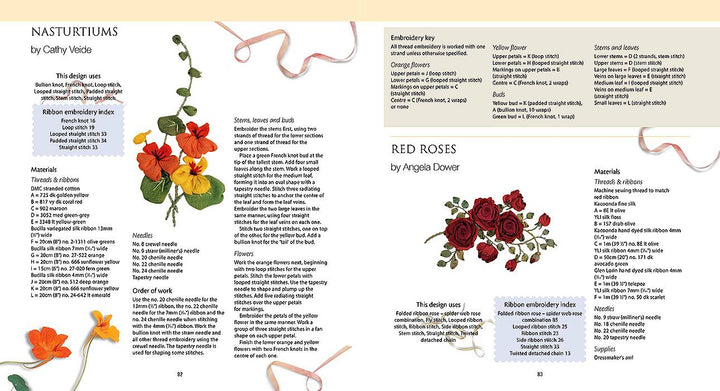 Accomplished embroiderers have compiled advice on choosing ribbons, fabrics, needles and frames, as well as a host of other hints and tips. There are 40 exquisite designs with full detail provided on the materials and stitches used for every element and a helpful Ribbon Embroidery Index directing you to the appropriate step-by-steps for each technique. Templates, a pattern key and a comprehensive index make this a must-have manual for anyone wanting to learn or brush up on ribbon embroidery skills.