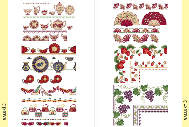 As a sourcebook, this contains dozens of exciting border designs to inspire both experienced and novice stitchers. It is brimming with ideas that include strong geometric patterns, pretty florals, and fun motif-based designs. There are a variety of sizes which can be used to adorn tablecloths, towels, cushions, clothing, and any fabric or cross-stitch project.