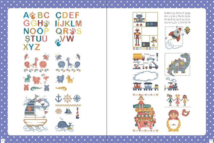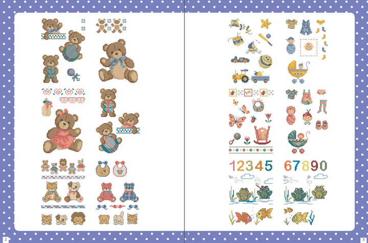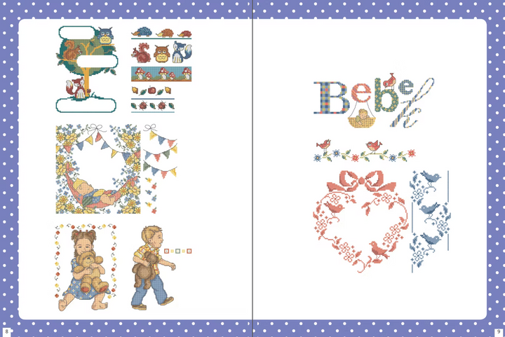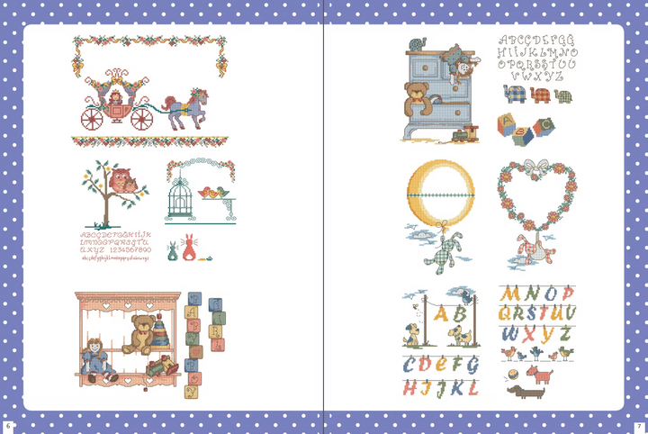 The patterns, which are perfect for beginner and advanced stitchers, can be used to make fun greeting cards, patch onto change bags, add color to bed linens or clothing, or to simply create a beautiful sampler to commemorate the happy arrival.