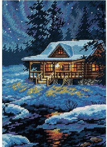 Moonlit Cabin Petites Cross Stitch Kit 65007 Gold Collection by Dimensions
