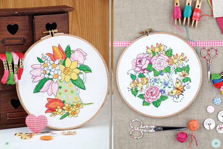 Each of the 20 circular designs in this book is represented by a full colour and symbol chart for either 14-count Aida or 28-count Evenweave linen. Every design can be displayed in a simple embroidery hoop to create an adorable gift for a new baby or young child, or for new parents.