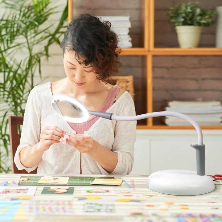 The Magnificent Pro excels in precision tasks with its adaptable 3-in-1 design, functioning as a Floor Magnifying Lamp, Table Magnifying Lamp and Task Lamp.