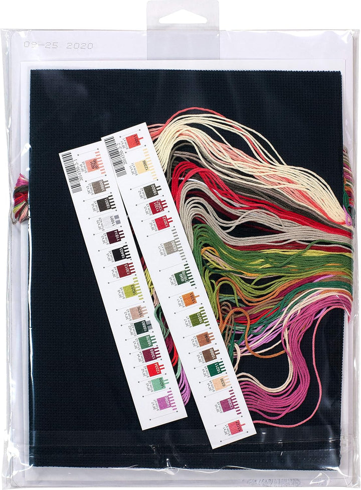 Tulip Drama counted cross stitch kit by Dimensions features vibrant blooms set against a dark background. Make a dramatic statement with this floral beauty