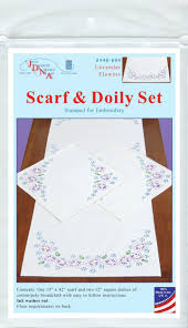 Lavender Flowers Scarf & Doilies Set Stamped Embroidery by JDNA 448-694