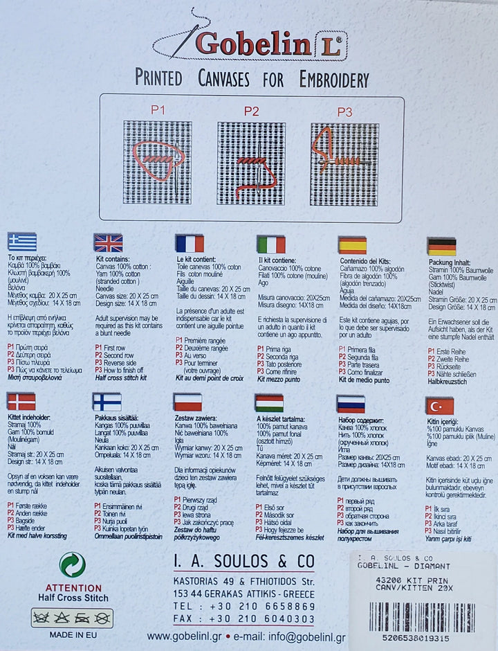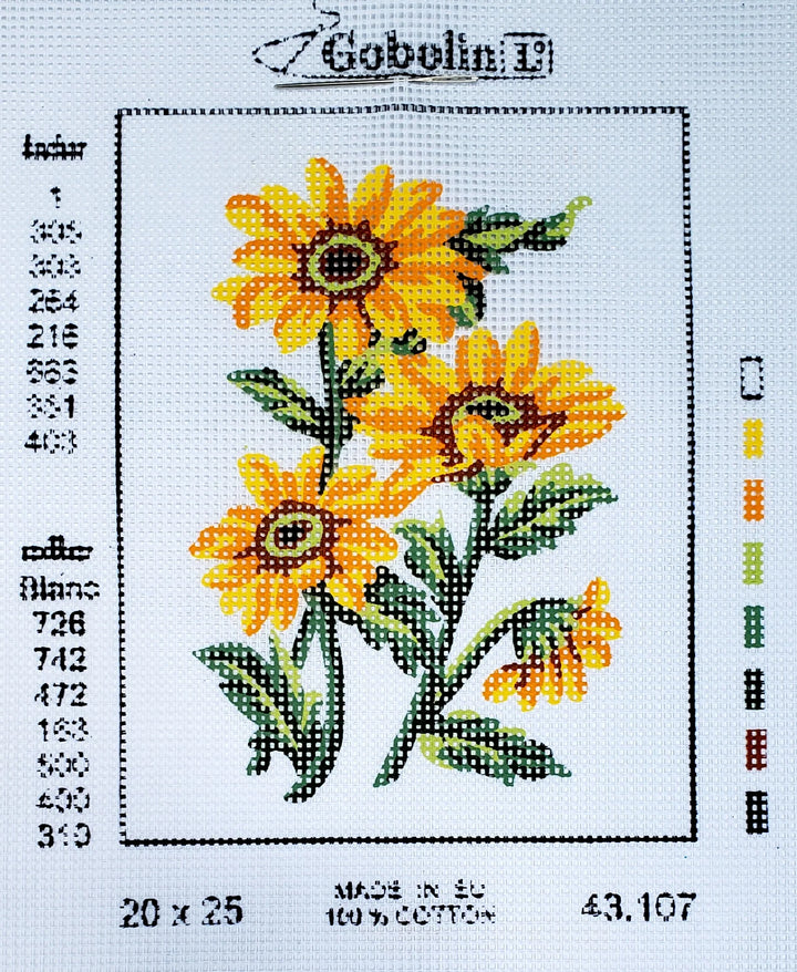Floral Tapestry Kit by Gobelin L is a printed canvas kit with stranded cotton threads. Tapestry stitch (half cross stitch) is used to complete this beautiful design.