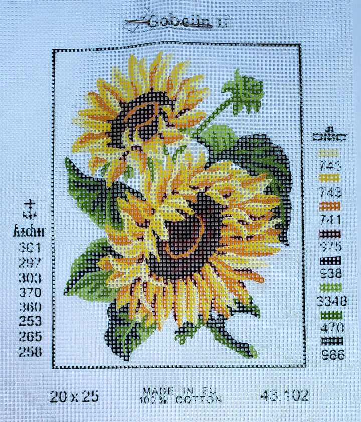 Floral Tapestry Kit by Gobelin L is a printed canvas kit with stranded cotton threads. Tapestry stitch (half cross stitch) is used to complete this beautiful design.
