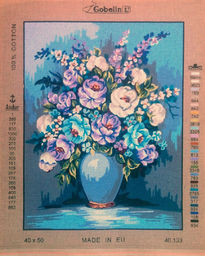 Flowers in Vase tapestry canvas by Gobelin L.