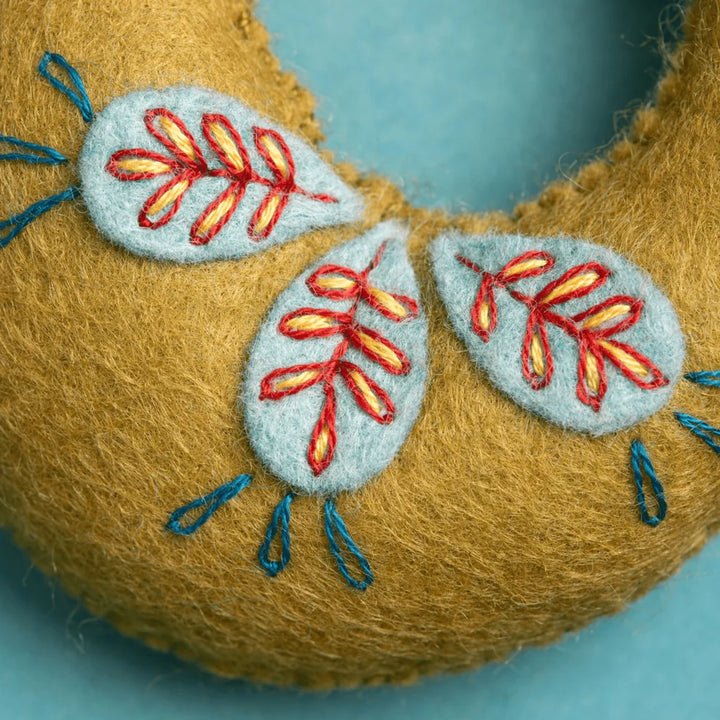 Everything you need to complete the project is in the box. This kit includes high quality super soft wool mix felt as well as 12 carefully chosen assorted DMC threads, a needle, toy filling and ribbon.
