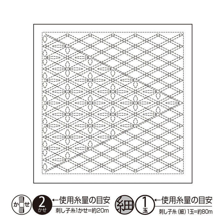 You'll need approximately 40m (2 skeins of 20m/skein Sashiko threads) to complete this hana-fukin sashiko sampler.