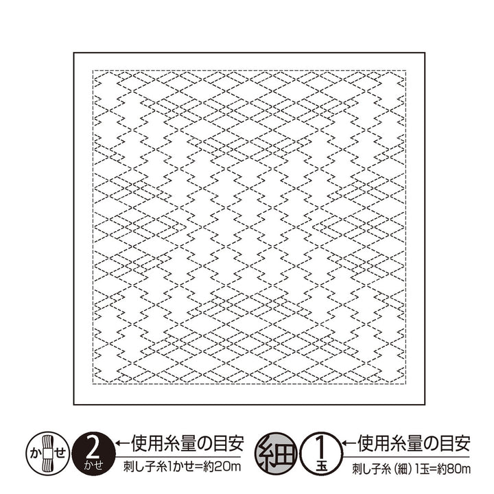 You'll need approximately 40m (2 skeins of 20m/skein Sashiko threads) to complete this hana-fukin sashiko sampler.