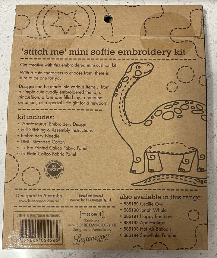Stitch Me Mini Softie Embroidery Kit Apatosaurus.