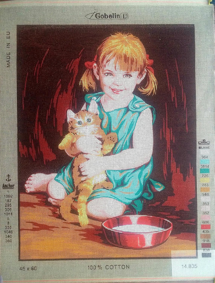 Girl with Cat Tapestry Canvas by Gobelin 14.835