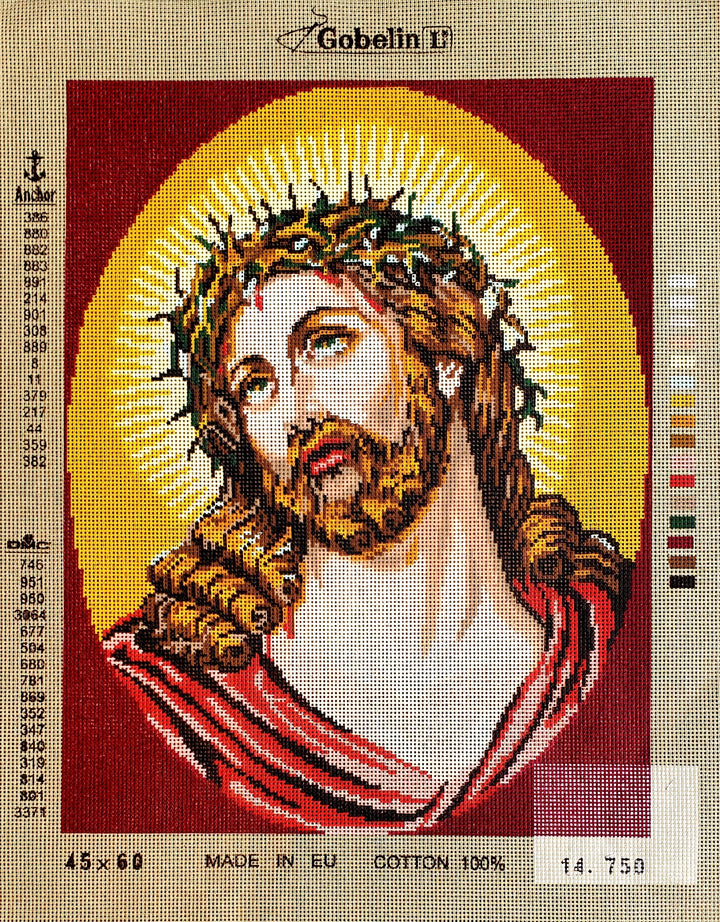 Jesus printed tapestry canvas depicts Jesus with the crown of thorns from the religious collection by Gobelin.