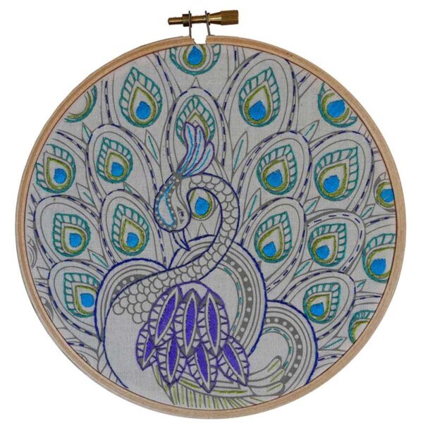 Peacock Colour Me In round embroidery hoop kit by Make It.