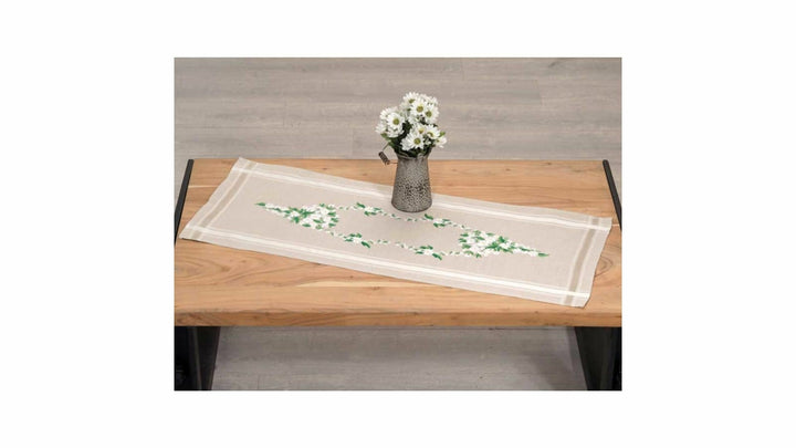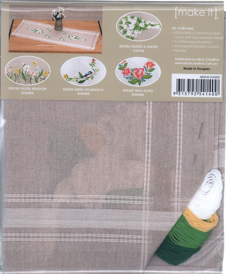 Daisies & Leaves Table Runner is a traced linen kit by Make-It.