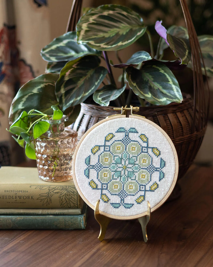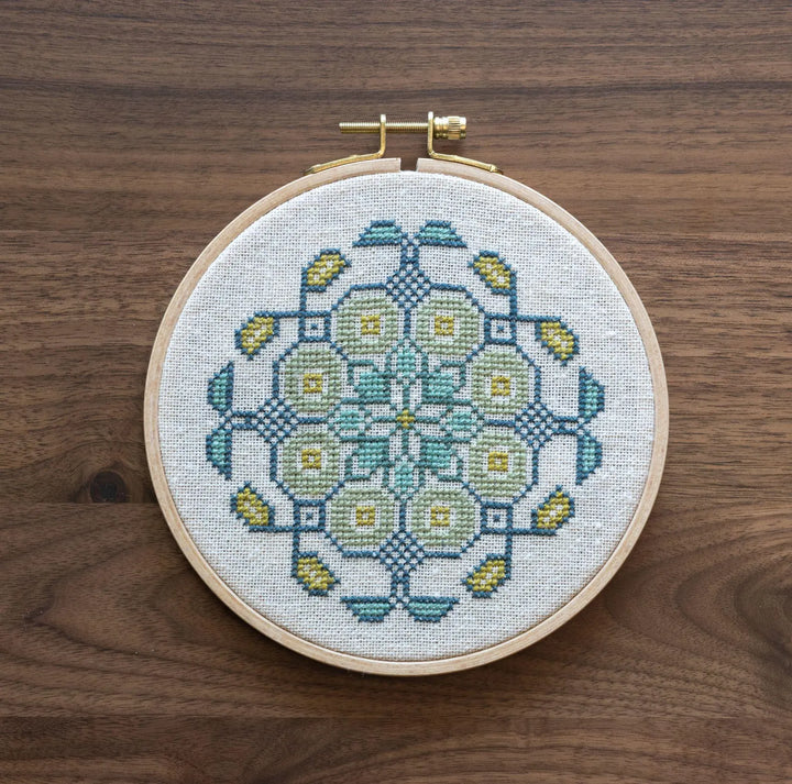 Mediterranean Medallion Celadon Cross Stitch Kit by Avlea Folk Embroidery.