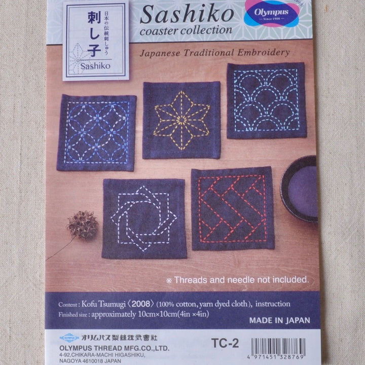 Sashiko Coaster Collection Navy Blue Sashiko Kit by Olympus TC-2