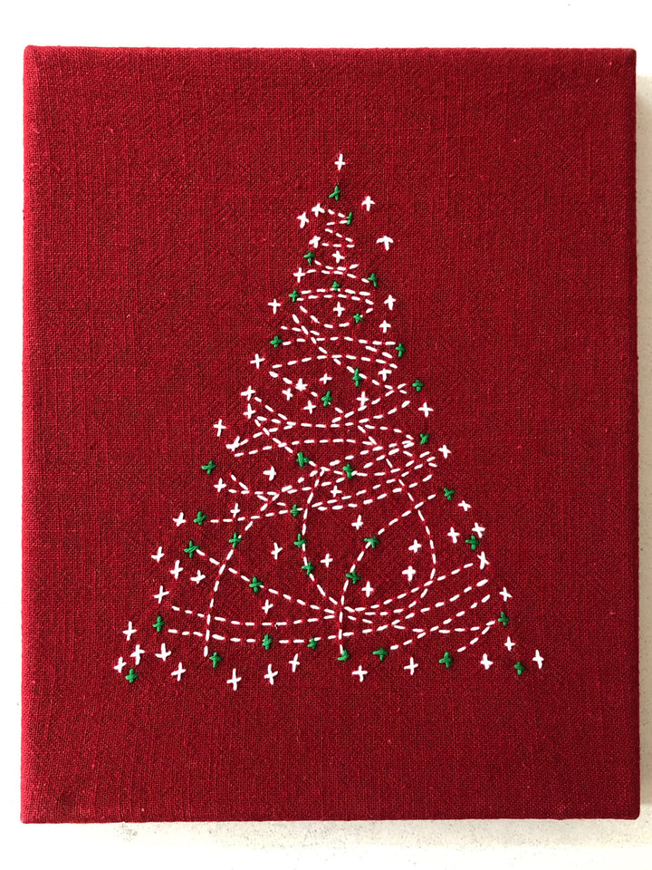 Sashiko Christmas Tree Panel in red by BeBe Bold. Introduce a little festivity into your living space with the twinkling Sashiko Christmas Tree.