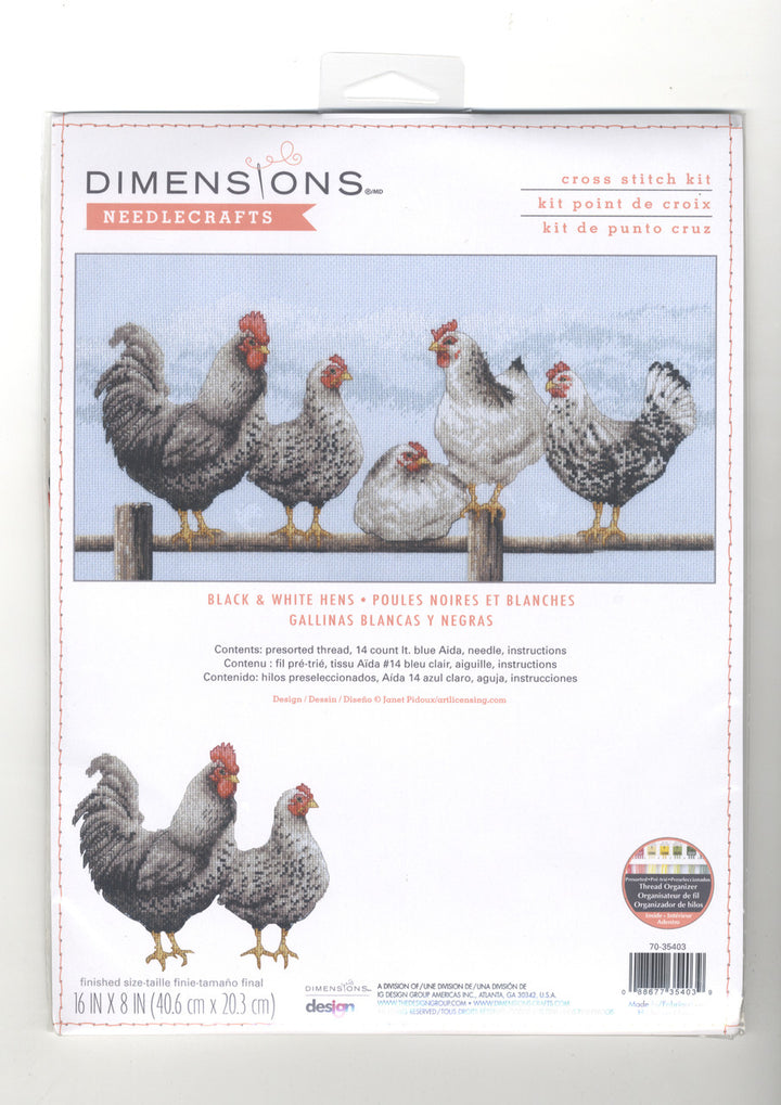Black & White Hens Cross Stitch Kit 70-35407 by Dimensions