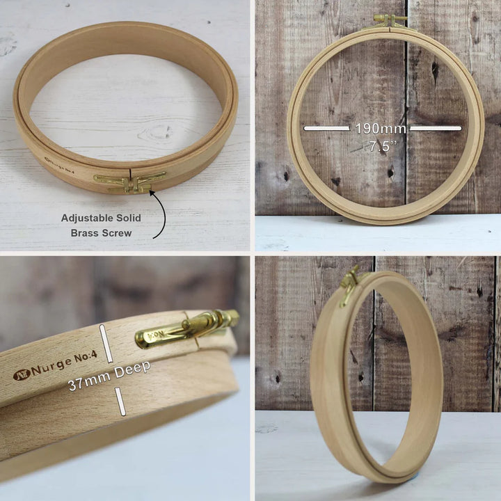 Nurge Beech Needle Punch Hoops are 3.6cm (1 1/2″) deep, so they are ideal for Needle Punch Embroidery as they can handle deep loop stitches without the needle going beyond the depth of the hoop.