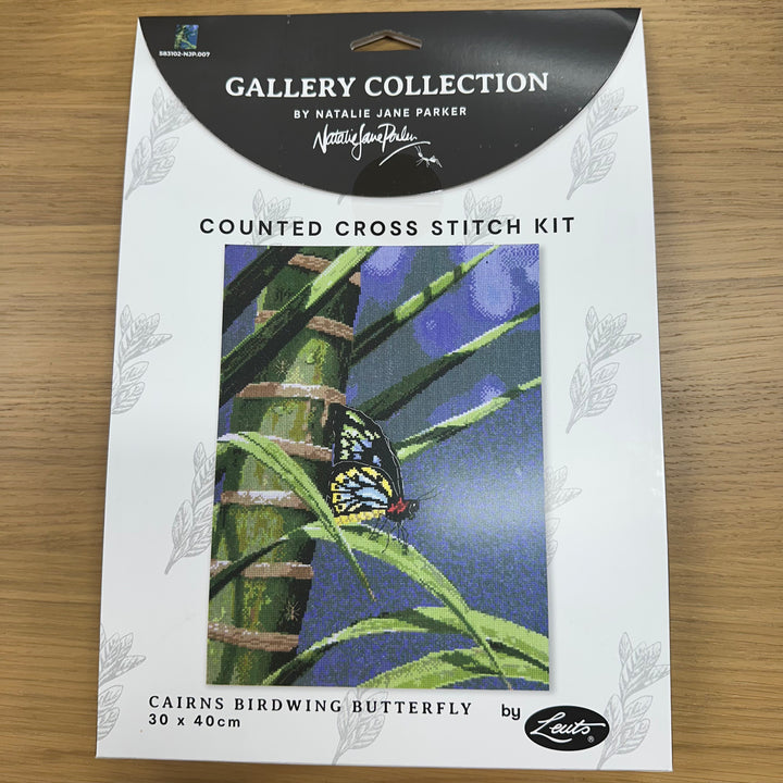 Cairns Birdwing Butterfly counted Cross Stitch Kit from the Gallery Collection by Natalie Jane Parker.