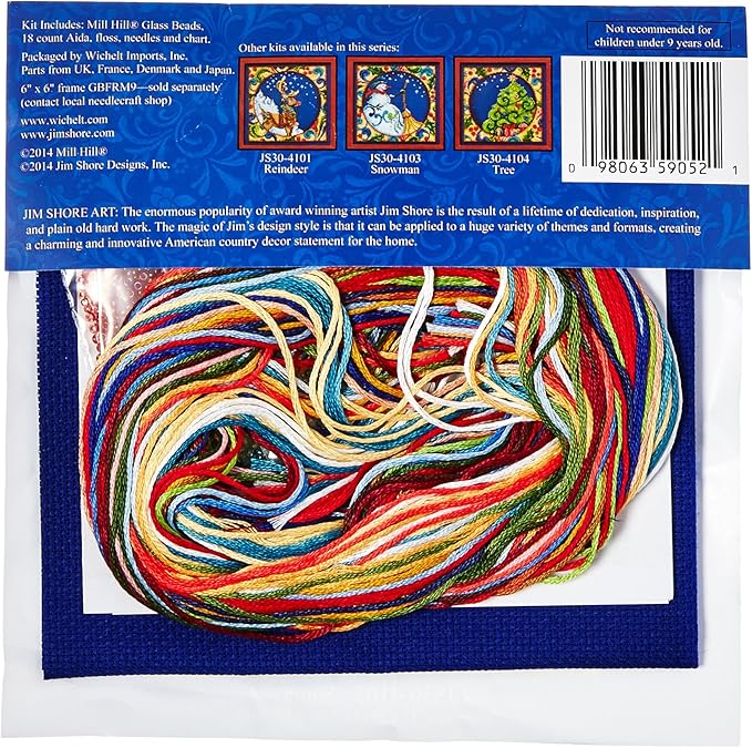 Santa cross stitch kit is part of the Winter Series set by award winning artist Jim Shore and Mill Hill . A vision of Yuletide spirit, this magnificent Santa relaxing looking up at the stars. The included Mill Hill glass beads add elegance and dimension to the picture. The design is bordered with colourful rosemaling patterns, inspired by the artistic traditions of the Pennsylvania Dutch. Great for any fan of Jim Shore's unique style and especially for anyone who loves his whimsical Christmas portraits.