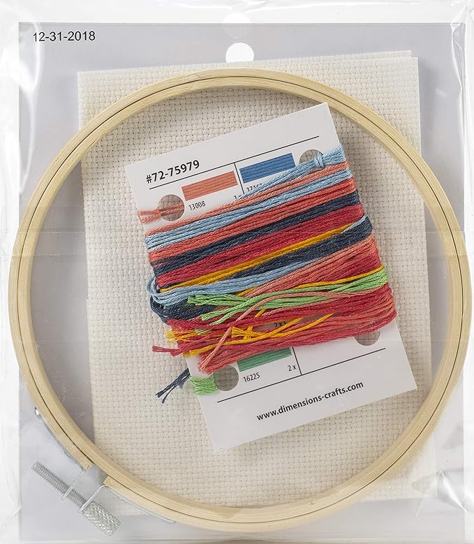 The enclosed bamboo stitching hoop doubles as a frame for displaying your completed project.