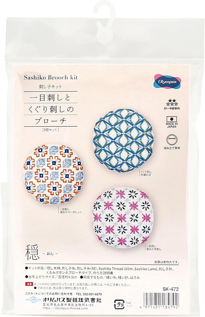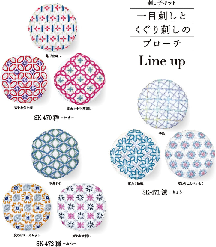 Sashiko Brooch Kit is a lovely kit that is stitched with 3 different patterns.
