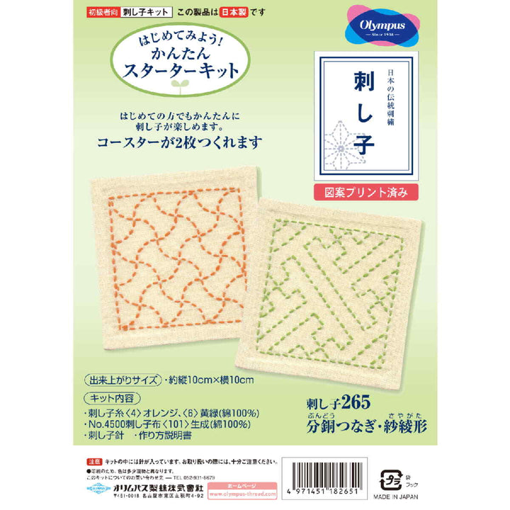 Sashiko Coaster Kit stitched with Olympus Sashiko thread (Thin).