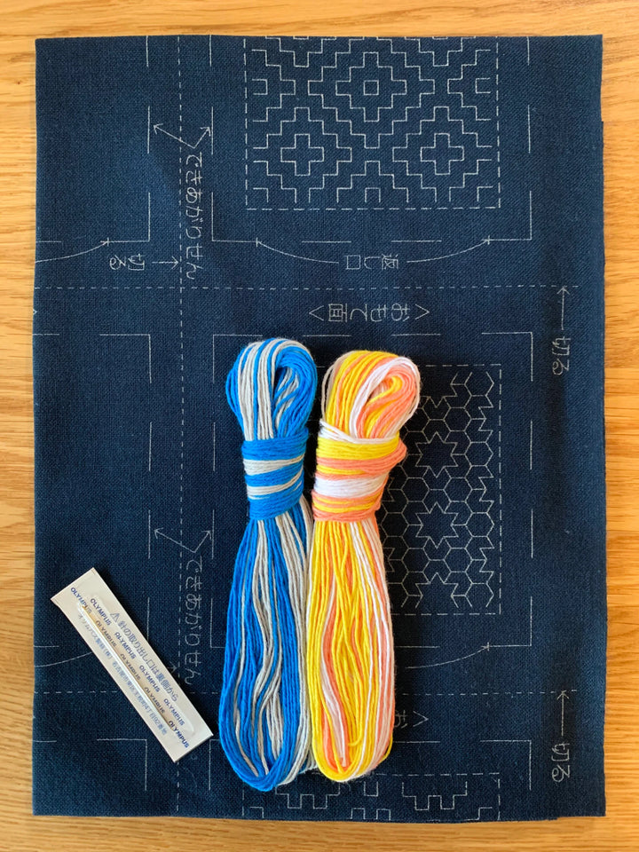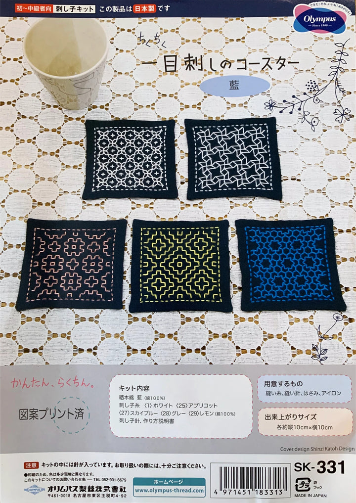 Sashiko Coasters Kit One Stitch design stitched with Olympus Sashiko thread (Thin).