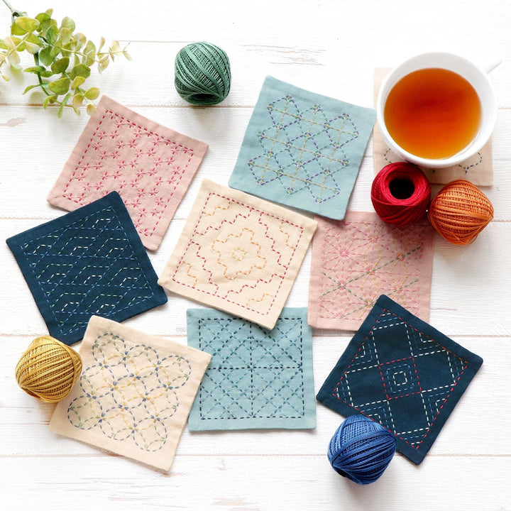 Sashiko Coasters Kit stitched with Olympus Sashiko thread (Thin).
