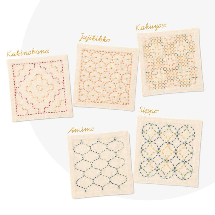 Each kit has five traditional patterns, so you can enjoy your Sashiko stitches.