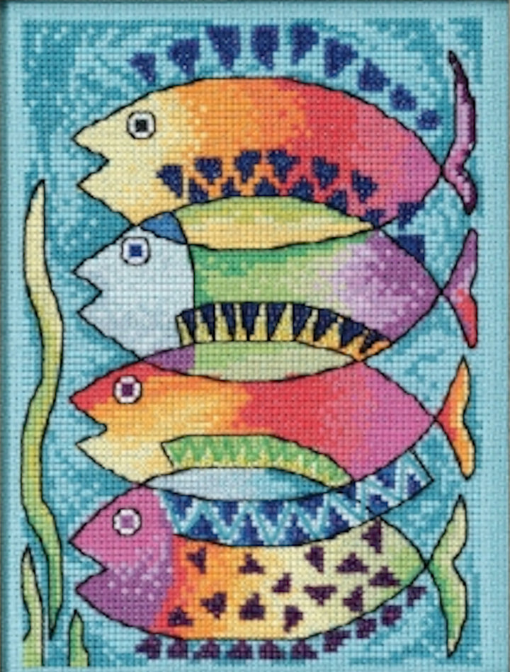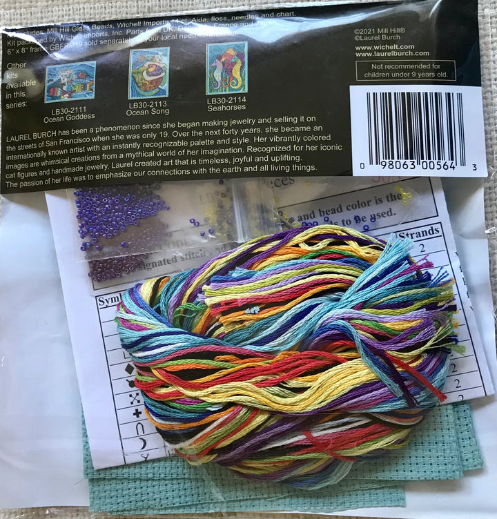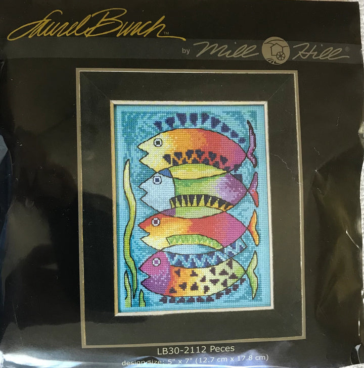 Peces beaded cross stitch kit is part of the "Sea Life" series by Laurel Burch and Mill Hill. Laurel Burch’s iconic style is exhibited in the artistic portrait of a four Peces, that’s fish in Italian, presenting a beautiful marriage of colour and texture in shades of dazzling green, brilliant yellow, rich orange and exquisite tropical blue. The Peces are outlined in Mill Hill glass beads adding elegance and dimension to the picture. Great for any fan of Laurel Burch's unique style and especially for anyone who loves her iconic ocean figures.