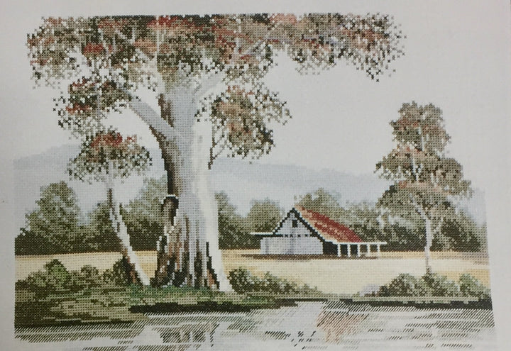 This is a typical outback Australia scene, which came about as an experiment, to determine whether a landscape could be worked on cross-stitch.