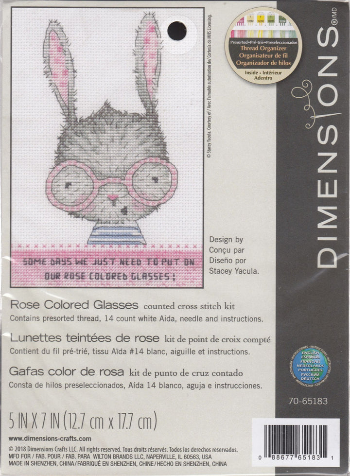 Rose Coloured Glasses Cross Stitch Kit by Dimensions. When the going gets tough, put on your Rose Coloured Glasses! The cute bunny knows that those glasses can make the world seem like a better place.