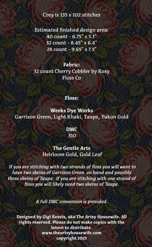 Model is stitched on 32ct Cherry Cobbler by Roxy Floss Co.